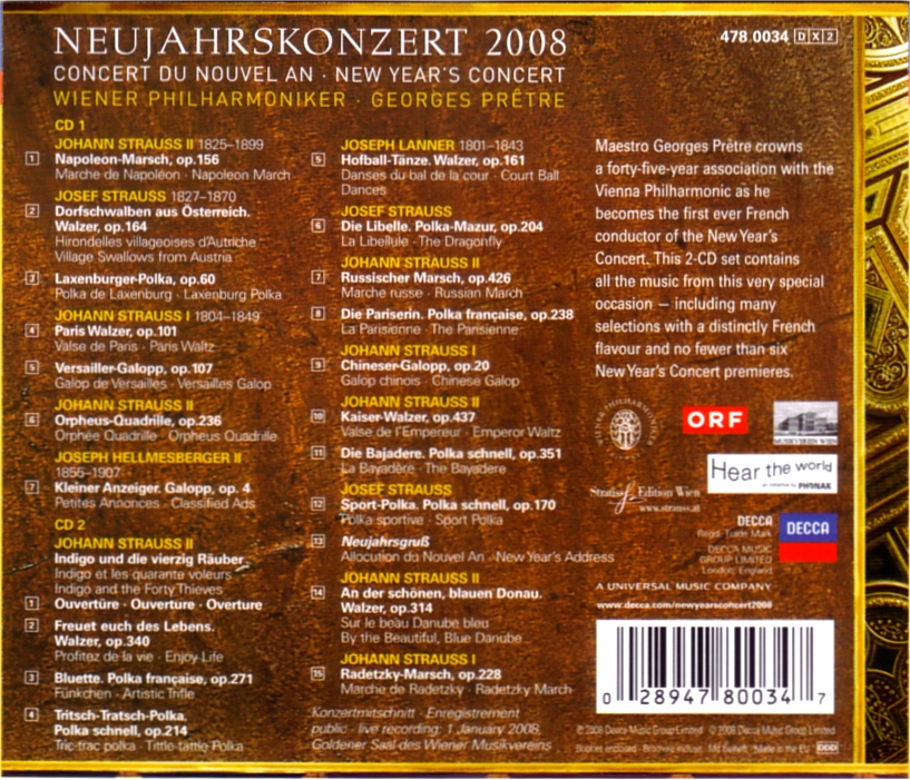 Rec. Date,Location | | Großer Musikvereinssaaal, Vienna + Sofiensaal, Vienna |