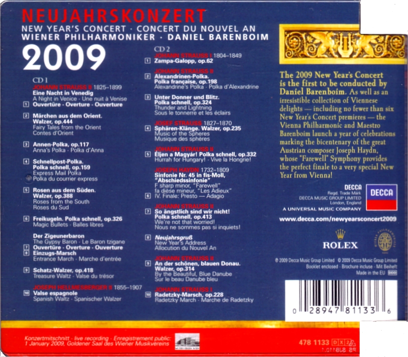 Rec. Date,Location | 2011 January 1 | Großer Musikvereinssaaal, Vienna |