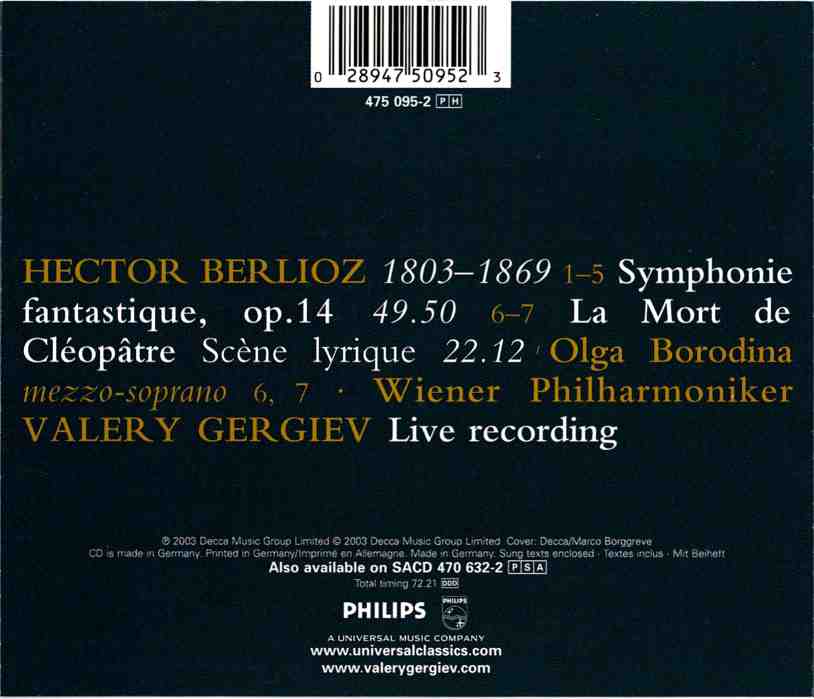 | (EU)Philips 475 095-2 BERLIOZ SYMPHONIE FANTASTIQUE LA MORT DE CLÉOPÂTRE |